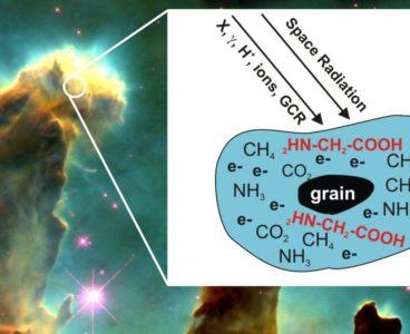 In a laboratory experiment that mimics astrophysical conditions, with cryogenic temperatures in an ultrahigh vacuum, scientists used an electron gun to irradiate thin sheets of ice covered in basic molecules of methane, ammonia and carbon dioxide. These simple molecules are ingredients for the building blocks of life. The experiment tested how the combination of electrons…