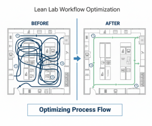 Value Stream Mapping visualizes sample and information flow through the lab, documenting every step from receipt to result release and measuring both processing time and wait time at each stage. The exercise typically exposes what Lean practitioners call the “hidden factory“: rework loops, approval bottlenecks and redundant quality checks that consume resources without adding value.