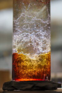 Exposed oxygen sensitive material at the bottom is contrasted with unexposed portions inside two concentric cylinders at Sandia National Labs on Nov. 30, 2023. The cylinder will protect contents by indicating if there has been tampering. Photo by Craig Fritz