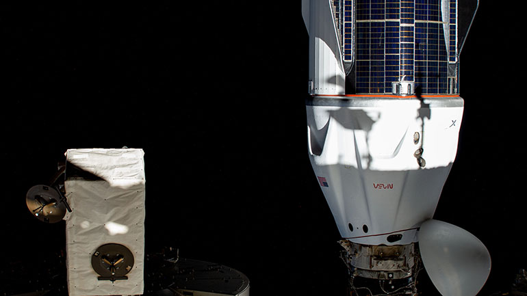 The SpaceX Dragon Freedom spacecraft is pictured docked to the space-facing port on the International Space Station’s Harmony module. Image courtesy of the International Space Station (ISS)